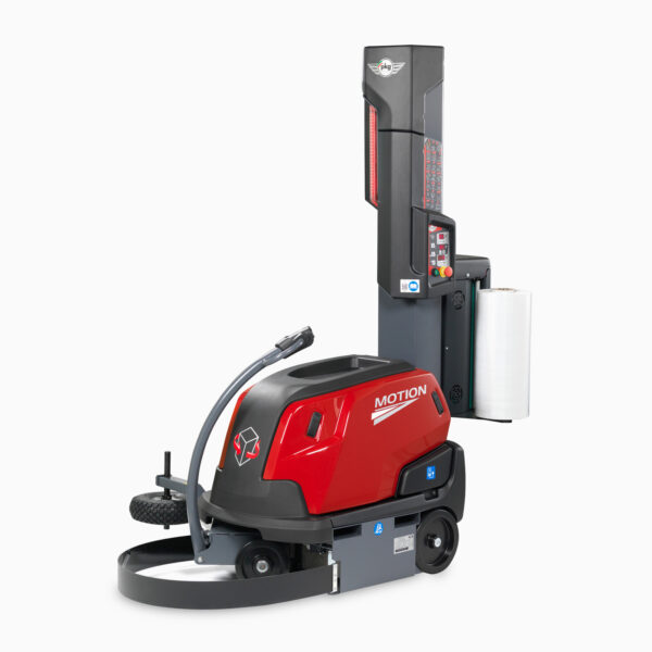Akumulátorový mobilný baliaci stroj PKG MOTION s pojazdom pre balenie paletových zásielok...