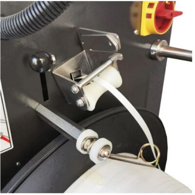 Ďalej obsahuje: automatické vysunutie úväzku na konci cievky, nastavenie doby chladenia zvárania (COOL TIME), nastavenie teploty zváracieho kotúča, rezačka pásky, automatický systém nakladania pásky, magnetické bezpečnostné senzory atď. Páskovač je k dispozícii na požiadanie s rôznymi veľkosťami oblúkov.