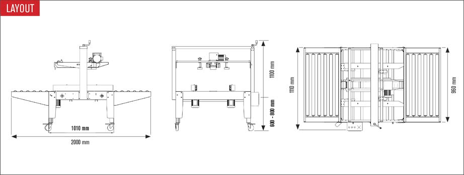 - Rozmery stroja s valčekovými dopravníkmi: d 2000 x š 1100 x v 1700-1900 mm