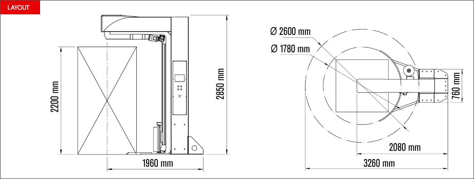 Ovinovací stroj paliet Roto Wrap 1000 AE s otočným ramenom vám umožňuje baliť ťažké aj ľahké nestabilné zásielky. Štartovací systém a zastavenie hnacieho kolesa prebieha bez spätného rázu a bez zotrvačnosti, okrem toho nie sú potrebné pevné ochranné kryty, pretože samobrzdiaci motor v kombinácii s predným nárazníkom (Bumper) okamžite zastaví rotáciu pri minimálnom kontakte. s prekážkou. Konštrukcia stroja je vyvážená a vyžaduje upevnenie k podlahe.