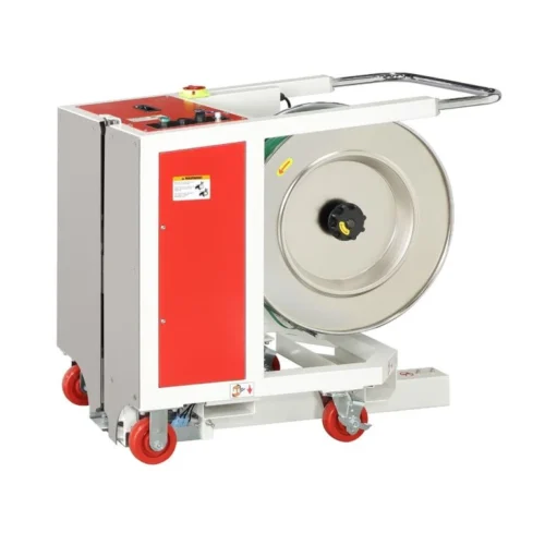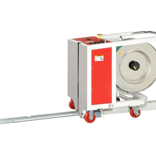 Model TP-602MV je mobilný poloautomatický stroj navrhnutý špeciálne na vertikálne páskovanie paletového tovaru. Ideálne riešenie pre prevádzky, ktoré hľadajú spôsob, ako zefektívniť balenie bez nutnosti ručnej manipulácie s páskou pod paletou.